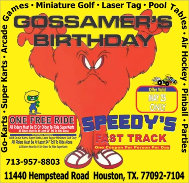 This coupon is valid on Gossamer’s Birthday ONLY.